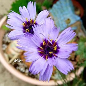 おはようございます*ˊᵕˋ* 毎日暑いですね(ó﹏ò。) 今日の花はカタナンケ“アモールブルー” 昔、ガーデニングを始めた頃、SNSでこのGSと似たようなガーデニングのコミュニティに入っていました。 その頃はまだ今のように色々な花がお店に並んでいなくて、お仲間さん同士で輸入の種を頼んだり、交換とかをしてました。 その1つがこのカタナンケ。タネから育てたけど…日本の夏に合わなかったのか花を数回咲かせて、枯れてしまいました。 でも、そのカタナンケが苗で売っていて… 感動して買っちゃいました(* ॑꒳ ॑* )⋆* 植え付けて1ヶ月くらい…やっと花が少しづつ咲いて来ました。 キレイに咲いてくれてありがとう (*ˊᗜˋ*)/ᵗᑋᵃᐢᵏ ᵞᵒᵘ*
