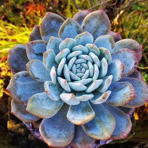 ブルーグレイの葉っぱちゃんと ピンク色の爪先が魅惑的な エケベリア・オレンジモンローさん😻💙🤍💗 リンゼアナさんに矮小剤をかけたとか言われてますが…矮小剤が切れたらしく…見事な巨大っぷりです😸💧