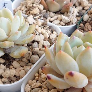 5連勤でヘトヘトで寝てばかりです😰 寒すぎると多肉は白くなりますか? オレンジモンローとラウリンゼ (もちろん他のも) 紅葉どころか白すぎる~🌀 皆様の多肉さんどうでしょうか?😩