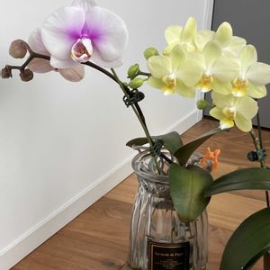 ミディ胡蝶蘭 モニターでいただいた ミディ胡蝶蘭、アップルキャンディ。 見えるだろうか🤔😆 わー🤩🤩🤩