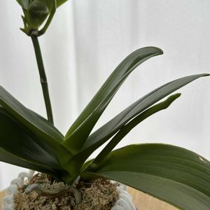 ミディ胡蝶蘭・キャンディ🍭に出てきた葉から、太い根がニューンと伸びてきました。これはやはり子株❗️ “高芽”と呼ぶことをGSで教わりました。 もう少し根が増えて、伸びたら株分けしよう❗️そうしよう❗️