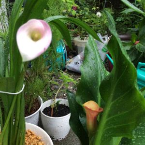 ご近所の方からカラーの苗をいただきました💕💕ピンクと黄色というのは聞いていたんですけど、お花までが付いているとは思いませんでした💖嬉しいなぁ😊