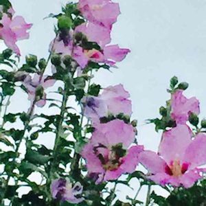 ご近所のマンションに咲いていたムクゲ。きれいなピンク💕
