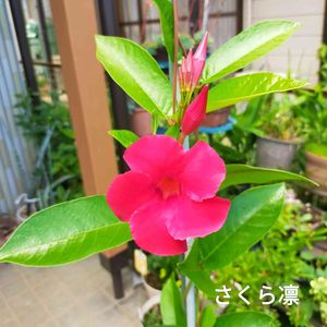 こんばんは(*^_^*)🍴。 ☔雨、止まないかな~。 火曜日までお庭はお休みです💔。 1枚目はSUNTORYサンのマンデビラ「クライミング・サンパラソル」☂️。 2年目の開花ですが、ちょっと調子を崩していて、葉っぱが🍃ポロポロ落ちてます💦。 ☔雨多過ぎ😫💦。 蔓を誘引した為に、軒下に移動出来なくなった(笑)。 失敗したわー😱💦。 2枚目はホームセンターの見切り品。 ¥50の「カザニア」で2年目&株分けしたもの💡。 そろそろお庭に降ろそう~🎵と思ってたら、咲いちゃいました😁💦。 雨が上がったらお庭にー😅。 3枚目は「ミニバラ🌹」。 特に名前はありませんでした。 5年目になりますが、毎年沢山さいてくれます🙌💕。 手間いらずな上、ここから秋まで繰り返し咲くので、とても重宝してます。 赤い花&all鉢植えです。 しかも、鉢栽培が苦手な私(笑)でも上手に育てられてます👍。