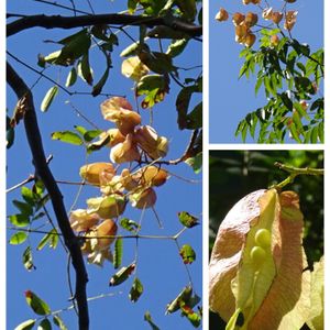 おはようございます😃 オオモクゲンジの実 熟すと黒くなる 9月に花が咲くらしい (大木欒子 ムクロジ目/ムクロジ科/モクゲンジ属) 公園内の緑道で