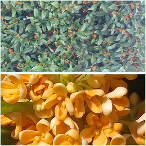 散る前に…《金木犀》 二本の歯欠け 現在8本の生垣 漂う香りに浸かりながら ビール箱に座り 晴天に舞う二羽の鳶を目で追う… 幸せ感じるひととき…🙏 イキテル~(>ω<)ヨロコビ感謝…🤗🙏 画面上?! 霞か?雲か? 蜘蛛の巣みたい!!😌 ご覧頂きありがとうございますm(_ _)m 2023.10.18のこと