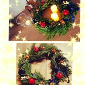 見よう見まねでフレッシュリースを作りました✧*。 木の実とフェイクを挿して完成!センスを疑われそうだけど自己満足です💪 キャンドルナイトも楽しめそう.。.:*・゚♡★♡゚