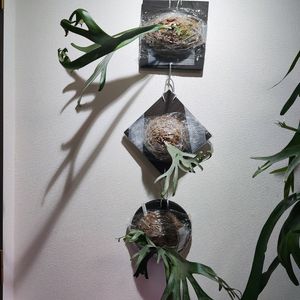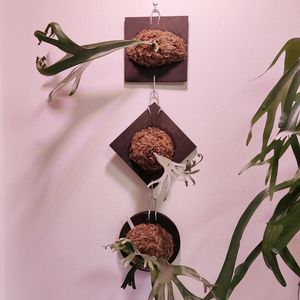 こんばんはー!ビカクシダウィリンキーの子株と、イオナンタピーチを仕立てました。板はホームセンターで売ってる切れ端なので一枚60円です。 テグス巻き初めてやりましたが、不慣れなので苦戦しましたw イオナンタピーチと、フエゴを比べてみましたが、色の違いがはっきり分かって楽しかったです。 ウィリンキーの子株、根がポロッと取れちゃったものなのでもしかしたら枯れちゃうかも。 あ、このあとももう一つ投稿します