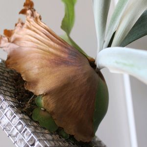 おはようございます🌿 ビカクシダ・ウィリンキーです けっこう貯水葉が枯れてきましたが、 暖かくなったらまた展開することを信じて見守ります😌 今日もよろしくお願いします☕