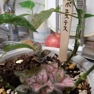 あれ〜⁉️ シンゴニウムの鉢からひょっこり😆 これはヒポエステスの赤ちゃんだ❣️ 隣から種がこぼれだのね〜😊