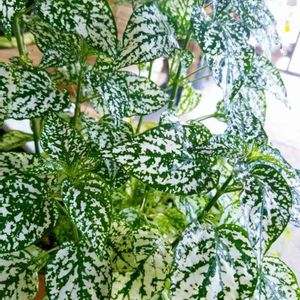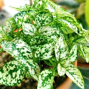 ヒポエステス(ホワイト)はこのような感じ。私は斑入りの植物が大好きなんだけど夫は蓮コラっぽくて気持ち悪いと言う。