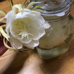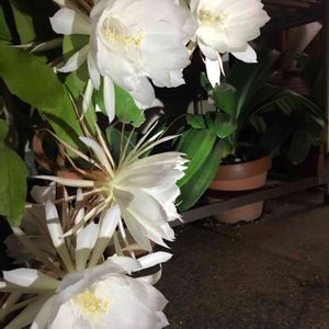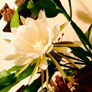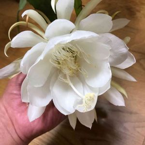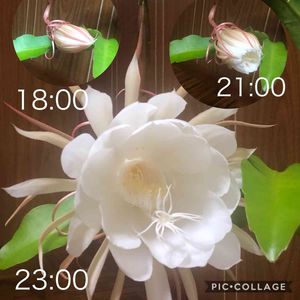 昨夜の月下美人 開花ショーです 夕方から部屋の中に取り込んで 楽しみました💓💖 9時ごろからなんともいえない 優雅な香り お届けできないのが 残念(≧∀≦) 11時頃満開になりました💕😍 そして 朝には萎んでました😂 美人薄命 言葉そのものの 月下美人さん ありがとう❣️