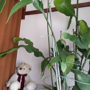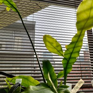 冬の間、 カーテンの向こうのなんちゃって温室で スクスクと育った月下美人 秋に部屋へ取り込んだ時には あんどんの1番上の段に届かなかったのが 今は倍くらい大きくなった この場所が好きなんやろね❣️ このまま室内で育てるかな😆