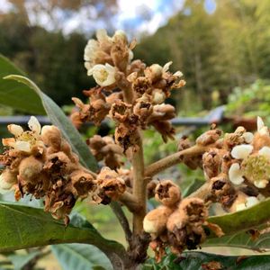 ビワの花が咲きました😀いかん❗️摘蕾しなきゃ😱💦