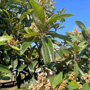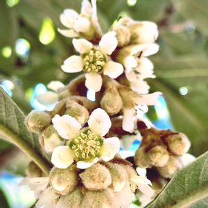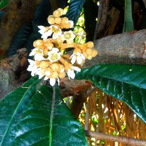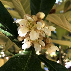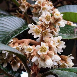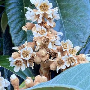 今日のお花、ビワ❗ ビワの花が咲き始めました🎶😄 来春、またカラスと知恵比べです。😅