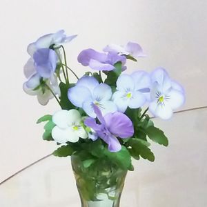 今日のお花スミレ💜 まだ咲いていないので摘芯でカットしたビオラのお花を💜 ダイニングにちょこっと💜 グラデーションが素敵です💜