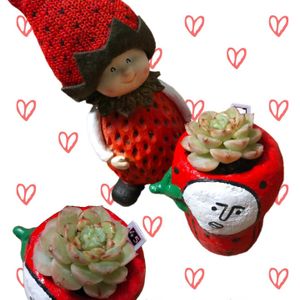 1枚目 🏷️毎月15日はいちごの日 夜分遅くにギリギリ投稿😅💦 のりたましゃんに頂いたいちごちゃん人形と45さんに頂いたいちごマン鉢と多肉ビロード💕 2枚目 🏷️毎月15日はインコの日 アナベルのドライ 今年も帽子作ってみたよ💚 シマエナガ鉢とキュピちゃんに 💘キュン