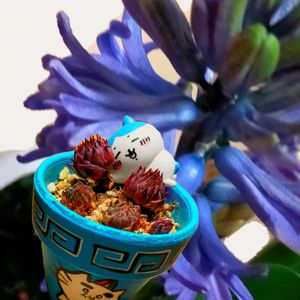 遅くなりましたが💦ニャンニャン祭りに参加します♪🐱 みたりん産猫ちゃんのラーメン🍜鉢💕 ミールンさんから頂いた、ヒヤシンスの紫が咲き出しました〜☺️💜 2枚目 昨日、のリたましゃんから素敵便が届きました🥰💗大きな📦にビックリ〜!!😳 ̖́-︎ 開けてからも大きな気球鉢にビックリでした〜🤣w𐤔🎶 他にも可愛いのがいっぱい💕 のりたましゃん、いつもありがとう🥰💗