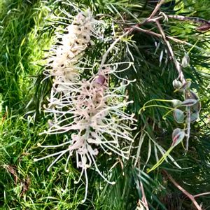 こんにちは😃💐 今日の5枚目は変わったお花のグレピレアさんです🤗♡♡♡ ◎ グレビレア 別名 スパイダーフラワー、羽衣の松 科名 ヤマモガシ科 ヤマモガシ科グレビレア属の植物で常緑の低木ないし高木です。 グレビレアの花は枝先に円錐花序または総状花序をつけます。 花色も白、赤、黄、ピンクなど種類毎に異なり、個性的な花です。 この花姿が蜘蛛を連想させることからスパイダーフラワーと呼ばれます。 名前がやっと分かりアップしました。 (((o(*゚▽゚*)o)))♡🤍💚🤍 主人と一緒に浜名湖ガーデンパークに行き見つけました。 ☆*:.。. o(≧▽≦)o .。.:*☆ 2023年7月31日撮影