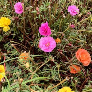 こんばんは😊 お疲れさまです😊 アルバムに明るい色が欲しくなりました💮 かわいい組み合わせの八重のポーチュラカです🏵️