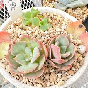 多肉植物園ナイト営業中✩.*˚ 『レモンブライト』を見に行った帰りにガーデンメッセで多肉狩り♪ いとうぐりーん苗の『軍旗』をお迎えしました♪ この子は群生の方が可愛いので、初めからカットして植えました。 外葉が赤くなる『ラブリーローズ』みたいで可愛い♪ 【軍旗の真相に迫る】 ちなみに、この『軍旗』 別名『ファンキー』とあるが… ●爪が内巻きで肉厚で葉先がピンク…のタイプ ●葉が長いパンジーみたいなロゼット…のタイプ と、2タイプあり ●『軍旗』は広葉が重なり薔薇のようなロゼットで、『ファンキー』とは似ても似つかない為に、個人的には同品種とは認めません^^; 『軍旗』と『ファンキー』では違い過ぎて、信憑性に欠ると言うか…パキベリアなど様々な説があり正確な詳細は謎に包まれた品種なだけに、別名『ファンキー』はちょっと^^; まぁ自分で『軍旗』と『ファンキー』で調べれば、明らかな違いですから。 嘘だと思ったら調べてみて下さい。 ここで言っている事の方が信憑性ありますから(^^ゞ 仮に同品種だとしても、『軍旗』は広葉。 長葉や厚葉は『ファンキー』で別札で分けますね^^; でないと余計にややこしい^^; 『フローラ』と『フローラB』みたいにタイプ別なら、別名ではなくタイプ別として品名も分ける方が理に叶ってるかな。