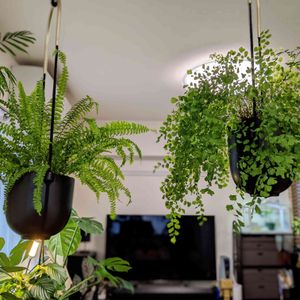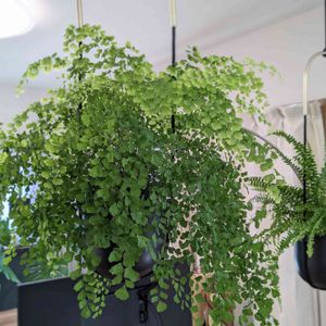 💚ネフロレピスツデー💚 💚アジアンタム💚 今日はシダの日ということで、我が家のシダ代表 (あとはアスプレニウムもいますが) リビングど真ん中につり下げてます。 アジアンタム、水涸れさせてしまって 半分くらい葉がパリパリになってしまったので まばらな感じになってます😇 その隙間に新芽🌱すごく出てきているのでいったんこのまま様子見です。