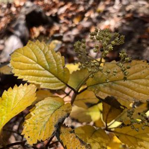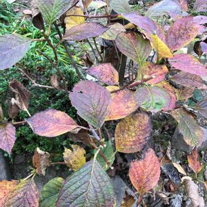 2019.11月 縮景園 アジサイの紅葉はごく一部だけ。後は枯れてるか、まだ緑かでした。