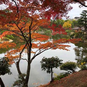 2019.11月 縮景園 先日のニュースウォッチ9で、縮景園の夜間ライトアップが放送されていました。 ただいまもみじまつり中です。夜は行けないので、曇り空だけど用事を終えてお散歩に。