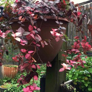 おはようございます*:ஐ 曇ってるけど、晴れて来るかな😊 毎年塀にいつの頃からか、ずっと昔から生えて居るツタ ෆ̈ ググってみたら「ナツヅタ」と分かりました🍁 春から緑で楽しめて秋には真っ赤に紅葉して今とっても綺麗です♥️ うちで咲いた薔薇(バフビューティ)のドライで作った秋色のリースを飾ってみました ꕥ ⚘ ↟