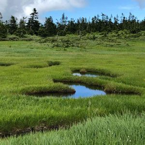 十和田八幡平国立公園にて 7月31日撮影 ここは爽やかな風が通り抜け下界の暑さを忘れさせてくれました🍃 湿原の中のプール これは池塘(ちとう)と呼ばれるもので火山噴出物の間にできた凹凸に水が溜まり土砂等により次第に浅くなり、水性植物が育つようになったのが始まりです。 これら植物の廃植質が水中に蓄積して更に浅くなり、次第に水気を好む色々の植物が育つようになり湿原となるそうです。