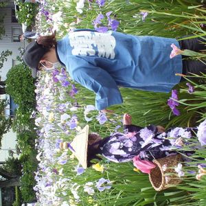 水郷潮来あやめまつり 体験学習でしょうか 花がら摘みをしてました^o^ あやめの花って 二度咲きするってホント?(^O^)