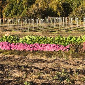 畑にピンクの菊