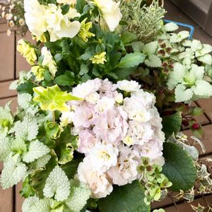 おはようございます👩🌾🌸✨ 今日は寒さが戻りましたね〜🍃 出来るだけ暖かくして、過ごして下さいね🍵🍡 植物達は、変わらず春モードです☺️💐 クローバーやラミウム、アイビー🍀🌿✨ 寄せ植えも楽しい季節です💕 ダブル咲きパンジー(上の方の白い子)も、 凄く蕾が増えました😳✨ 咲いたら、えらいことになる気がします😂 賑やかな季節、良いですね☺️💐