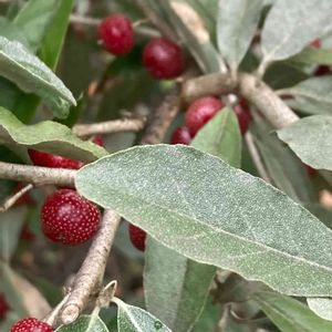ロシアンオリーブのグミ 初めて食べましたが、酸味はあるものの酸っぱ過ぎない。 こちらは友人宅のもの。 我が家のはいつ実をつけるか?