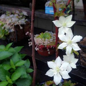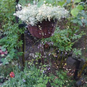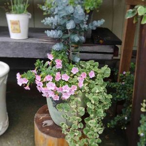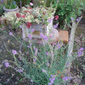 秋に寄せ植えしてお庭に置いたところに、こぼれ種で咲いたリナリアパープレアが癒されます(*´ω`*)