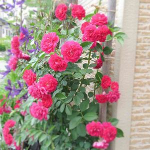 ルージュピエールさんが咲き出しました。 ブルーフォー・ユーさんと、一緒にパチリ📷😊