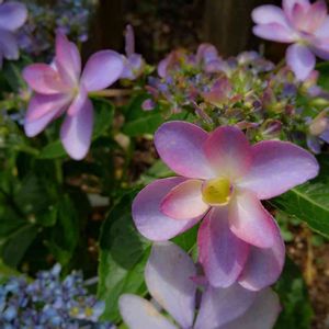 ピンクのダンスパーティーを青にしたくて、去年挿し木して、鹿沼土とピートモスに植えたら、紫になった(*^-^*)