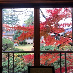 仕事中、この風景見ながらの食事❣️ 京都みたい❣️との知人。 会津若松です。 紅葉🍁も御馳走🥰