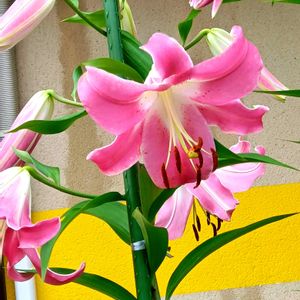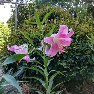 ♡ピンク🩷カサブランカ(通称)プリンセス カサブランカ♡ 2年目鉢植え🪴のピンクカサブランカが咲きました。 昨年より株数が増えたような〜🤭 庭のピンクのお花をご覧下さいネ! さて〜 カサブランカは真っ白のイメージ! 実は白以外のピンクや黄色のカサブランカと正式にはカサブランカではなく通称だそうです! ◉カサブランカ オリエンタル・ハイブリッドの真っ白な花が咲くカサブランカのみを言い ◉ピンクやイエローといった色の名前がついたカサブランカは同じオリエンタル・ハイブリッドの品種群であることが多いですが、 カサブランカとはまったく別の品種ということになります。 ■カサブランカ ピンクの品種 ①ピンクカサブランカという通称がつけられている「マレロ」という品種と、 ②プリンセスカサブランカという通称の「ピンクパレス」という品種があるそうです! 🏷️木曜日は桃色