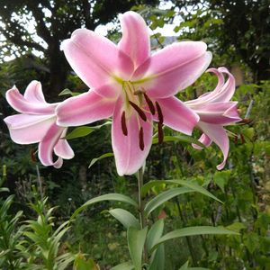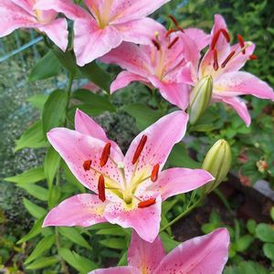秘密の花園でピンクのカサブランカ咲きました 白いカサブランカは満開で、ピンクも花が沢山 花言葉は 上品 富と繁栄 虚栄心 美しい姿ゆえ 高嶺の花 と呼ばれる