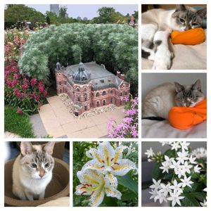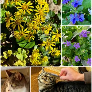 今日は楽しい🏷️ニャンニャン祭りですね😊 今日の小庭のお花と 今日のみるく(左)とくるみ(右) くるみはブラシや櫛が大好きです。 夫に櫛でとかしてもらって至福の表情😊 みるくはカメラを向けたら椅子の下に逃げて行きました🤭 🏷️ニャンニャン祭り 参加します。 よろしくお願いします🙏