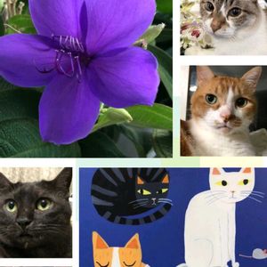 過去picから今日のお花 シコンノボタンを 検索したら〜 このコラージュpicが出てきました🥰 全員集合の懐かしいpic💜 色合いが素敵なお花ですね💜🌿 みんな懐かしい カルピン😽🌈も🙏