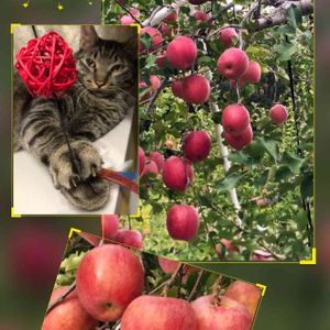 おはようございます🤗✨ 過去picですが りんご園🍎🍎に出かけた時の写真と グリ😽4歳♂とのコラージュpicです(^^) りんごの美味しい季節が待ち遠しいね🍎🥰 さて最近のグリは粗相も無く安心の日々です😮💨♪♬ オモチャを掴んだらなかなか離しません😅 みんな可愛いです😸💕🥰 素敵な一日を👍
