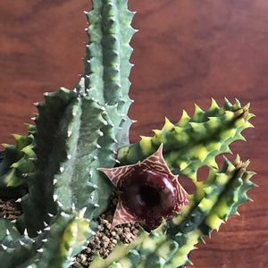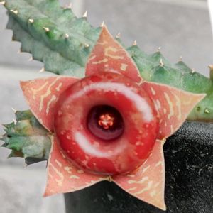 ドッ♪ドッ♪ドーナッツゥ〜🍩 今年もフェルニアゼブリナのお花咲きました٩̋(๑˃́ꇴ˂̀๑) コレを私はチョコドーナッツと呼んでます🤭 左の星型のお花の"修羅道"はどんどん開花するけど、フェルニアゼブリナはお花の数が毎年少ないので、開花すると小躍りするほど嬉しいです ⭐️ヾ(●︎´∇︎`●︎)ノ 🍩
