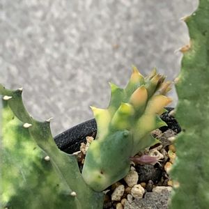 最近ホームセンターでゲットしたゼブリナ錦 小さい子株がニョキニョキ成長してきたと思いきや見慣れぬ小さい花芽のような物が😳 ついにガガ様のお花を見れる日が来たのか⁉️ うちには4年は育てているオルベアバリエガータがあるけどまだお花を見た事がなく、こんなに小さくてそれも最近出たばかりの子株につくなんて😙 ホンマに花❓ ガガ様ステキすぎます❣️