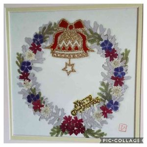 外は雪の季節になりお花のない季節になりました~😅 ということで昔作った押し花額X'masバージョンを😆