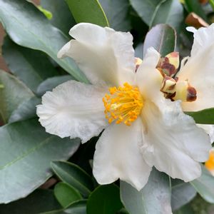 おはようございます♪ 散歩道のお花 🤍台湾椿(タイワンツバキ)🤍 🤍ゴードニア・ラシアンサス🤍 ツバキ科ポリスポラ属 開花期12〜1月 常緑高木 葉は互生長楕円形で光沢があり、花は白色で7〜8cm程あります