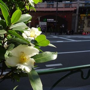 花友さんが有楽町のタイワンツバキをアップしていました。 あそこは、通り沿いに有楽町から、東京駅まで、ずっと白い花がきれいです。🌸🌸🌸🌸🌸 この花は、元日に鎌倉長谷寺に行った時のお寺の入口に咲いていたものです。💐