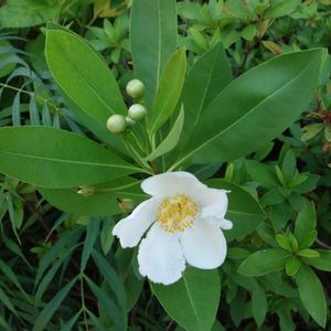 このお花、誰かしら⁉️(vol.54) 「チャ」のお花に似たあなたは。 「台湾ツバキ」と判明しました。別名「ゴードニア ラシアンサス」
