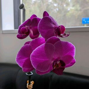 久しぶりの…ミディ胡蝶蘭のロイヤルミントちゃんの様子について報告を😊 今日は、我が家にお越し戴いてから… 約9週目(約1か月と3週間) 久しぶりにコップ1杯程のお水🥤をやりました。 途中、写真を取り忘れていますが… ちょうど1か月過ぎた頃にもお水をやっています。 なので…うちに来てからの水遣りはこれで3回目となります😳 度々、水苔の乾き具合を確認していますが…意外と水分を含んだままで、なかなか乾かないので、今のところ水遣りは、4週毎くらいの頻度です。 胡蝶蘭って、全く手が掛かりませんね〜🙄 水遣り以外は、全くの放置です🤭 それでも…あと少しで2ヶ月目を迎えるところですが、初めから咲いていた花も綺麗なまま😆✨まるで造花の如くに美しく元気に咲いています。 ミディ胡蝶蘭🌸🌿✨ (ノ◕ヮ◕)ノ*.✧驚きの咲きっぷり💖🎶